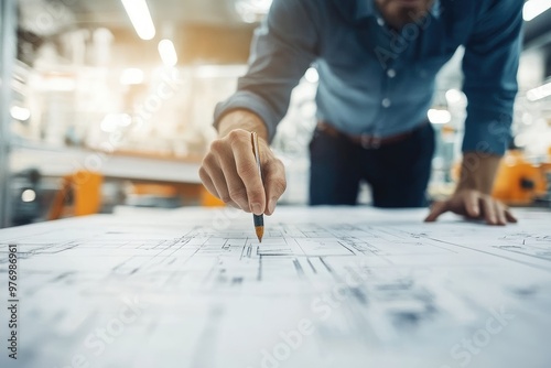 A man is drawing on a piece of paper with a pencil. Concept of creativity and concentration, as the man is putting effort into his work
