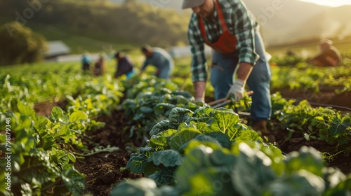 A man is working in a field of vegetables