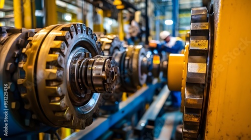 A man is working on a machine with many gears. Concept of industry and hard work