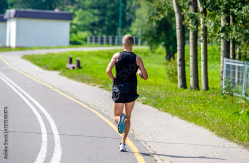 A man Jogging in a summer Park