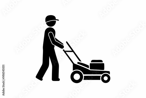 A man Mowing Lawn with a Lawn Mower icon vector silhouette illustration isolated on white background