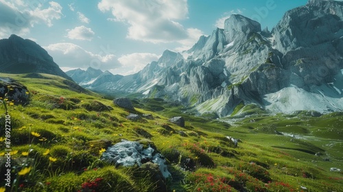A man rides a horse down a lush green hillside, with rolling hills and trees in the background