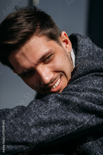 A man sleeping peacefully while wrapped in a blanket. 4792