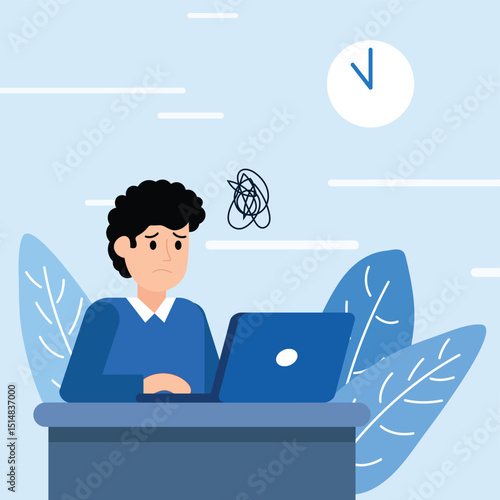 a man who is stressed because of working in front of a laptop. a depressed employee. a person who works under pressure