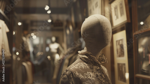 A mannequin coming to life in a fashion boutique, its movements captured in vintage, animated frames, blending timeless elegance with playful animation in a whimsical retail setting.