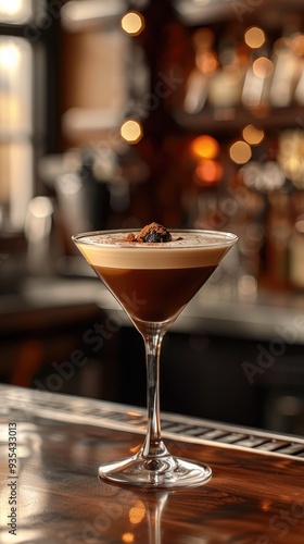 a Martini Espresso in a sophisticated bar environment. Generative AI.