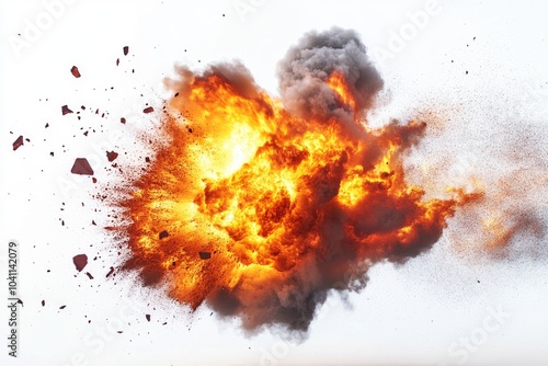 A massive explosion of orange and black smoke fills the air, with debris scattered everywhere