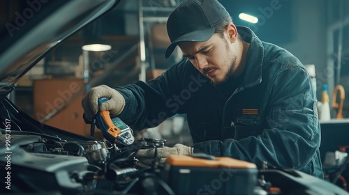 A mechanic repairs a vehicle engine, focusing on precision and tools.