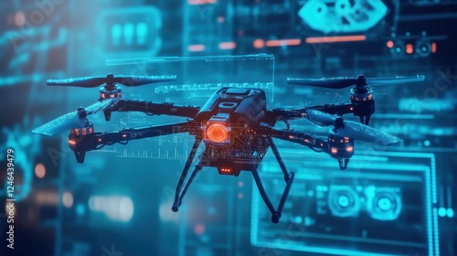 A medical drone delivering health supplies shown with a digital interface tracking the delivery.