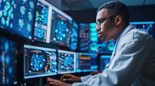 A medical researcher analyzing data on a computer, highlighting the role of data in medical breakthroughs