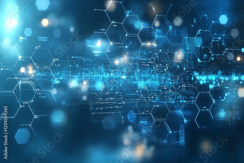 A medicine doctor interacts with a modern computer through a virtual screen interface, representing the concept of medical technology and networks. EHP, EMR, and electronic health records are key