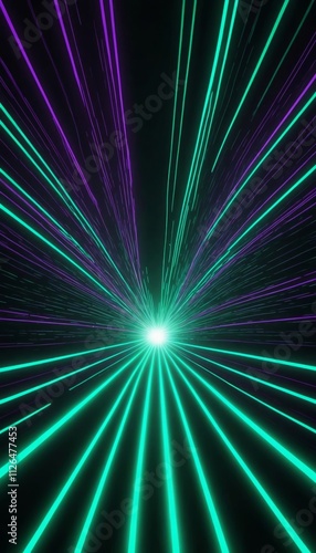 A mesmerizing abstract artwork featuring swirling neon lines in vibrant hues of purple and green. The dark background enhances the intensity of the colors, creating a dynamic and futuristic visual.