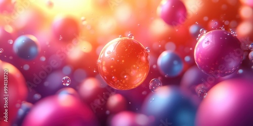 A mesmerizing abstract composition of iridescent spheres floating in a radiant and colorful backdrop, with soft-focus blur and subtle lighting effects