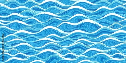 A mesmerizing background featuring seamless wave patterns in varying shades of blue and white, texture, hypnotic, calming