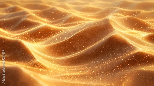A mesmerizing close-up of golden waves, shimmering with a sparkling finish, conveying a sense of warmth and luxury. The smooth curves invite a feeling of tranquility and beauty.