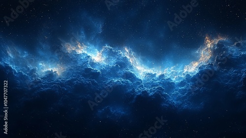 A mesmerizing cosmic scene with vibrant blue clouds and starry background.