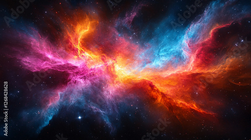A mesmerizing cosmic scene with vibrant psychedelic colors, swirling galaxies, and shining stars, symbolizing the vastness and mystery of the universe.