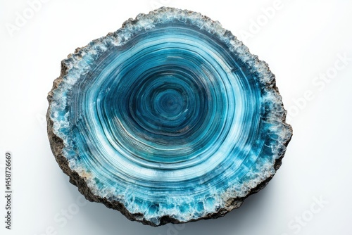 A mesmerizing cross-section of a blue gemstone revealing concentric circular patterns and textures.