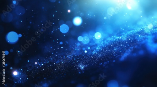 A mesmerizing deep blue cosmic background filled with sparkling light particles.