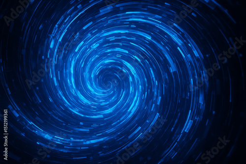 A mesmerizing digital swirl of blue light patterns, resembling a cosmic vortex. Perfect for illustrating concepts of technology, energy, or abstract creativity.