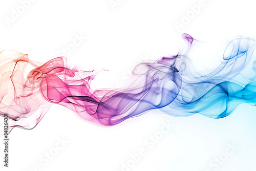 A mesmerizing display of colored smoke swirling gracefully against a pristine white background, creating a captivating visual effect.