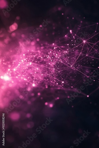 A mesmerizing display of glowing pink particles fills the space, creating an ethereal atmosphere against a deep black backdrop, evoking a sense of cosmic wonder