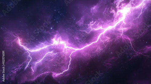 A mesmerizing display of purple lightning weaving through a starry cosmic background.
