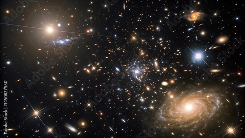 A mesmerizing display of stars, galaxies, and celestial wonders, offering a cosmic journey through the depths of space, and revealing the universe's infinite beauty.