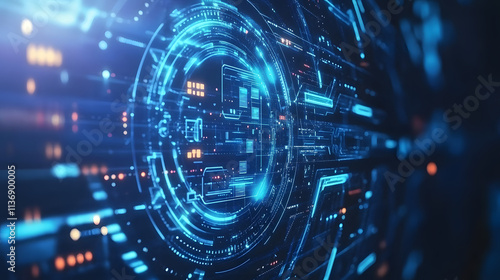 A Mesmerizing Futuristic Blue Circle Abstract Design Showcasing a Digital Interface with Glowing Neon Elements