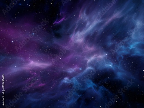 A mesmerizing nebula of swirling blues and purples, evoking a sense of wonder and cosmic beauty. The celestial clouds seem to dance and glimmer in the vast expanse of space