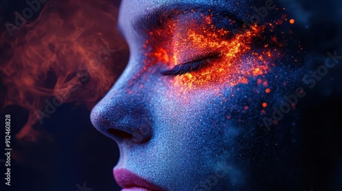 A mesmerizing portrait showcasing radiant colors and ethereal beauty, combining artistic expression and fantasy elements.