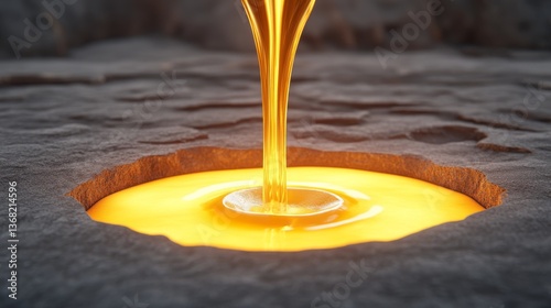 A mesmerizing shot of molten metal being poured into a mold with glowing and intense colors
