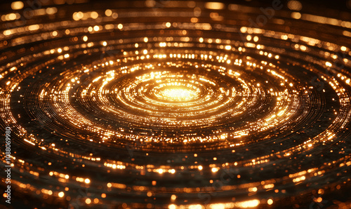 A mesmerizing spiral of golden light, radiating outward in shimmering patterns, evoking a sense of cosmic beauty and depth.