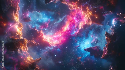 A mesmerizing stock photo featuring a celestial scene with colorful stars, planets, and galaxies in the magical universe. Celestial - Dragon. Illustration