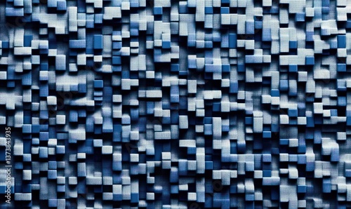 A mesmerizing texture of blue and white 3D cubes creates an abstract, dynamic background.