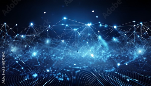 a mesmerizing visualization showcases the essence of interconnected digital systems a deep indigo backdrop serves as the canvas for a dynamic network of luminescent points each a beacon of data