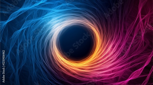 A mesmerizing vortex of vibrant colors swirling into a dark center, creating a captivating visual effect reminiscent of cosmic phenomena.