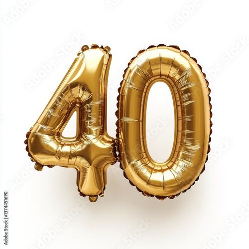 A metallic golden balloon shaped as the number 40, standing out against a white surface