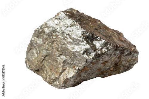 A metallic stone with silvery reflections and brownish tones, showcasing a natural and textured surface, set against a transparent background