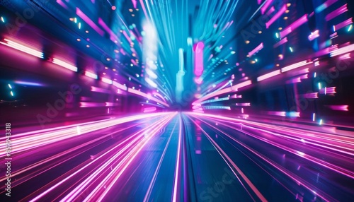 A Metaverse concept with a futuristic digital background and neon light streaks