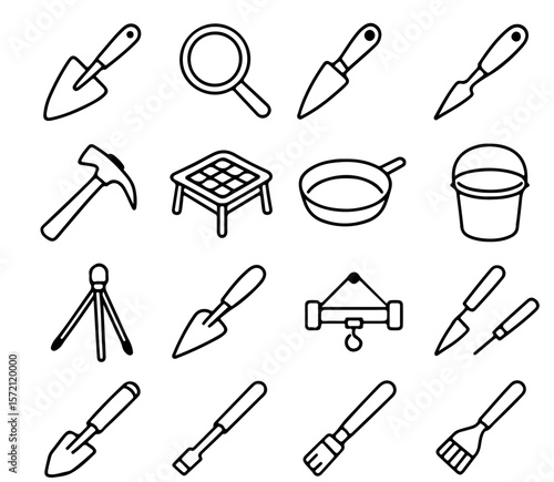 A meticulously arranged illustration showcases a comprehensive set of essential gardening tools.