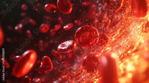 A microscopic of red blood cells in dynamic motion through a blood vessel