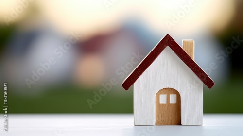A miniature wooden house model with a red roof, set against a softly blurred background, symbolizes home and comfort.