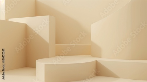 A minimal abstract background featuring an arrangement of beige geometric shapes with smooth edges.