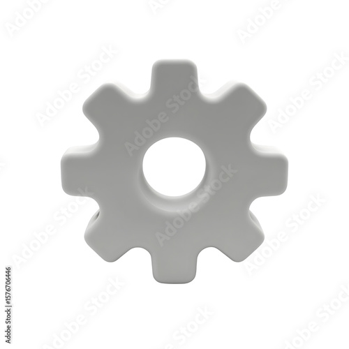 A minimalist 3D gray gear icon, symbolizing mechanics and engineering, set against a white background, conveying a sense of simplicity and functionality.