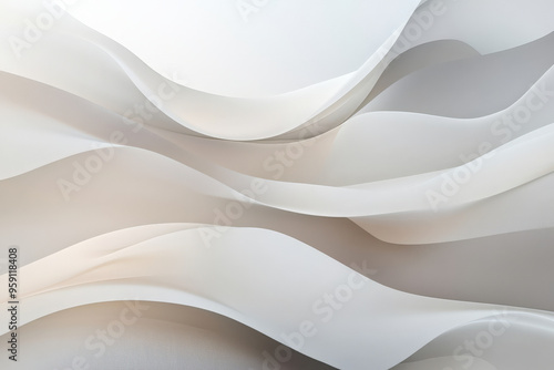 A minimalist abstract art backdrop with smooth, curved lines in soft, muted tones of beige, gray, and white. The gentle waves and subtle gradients create a calming, sophisticated atmosphere, ideal for