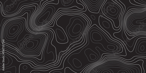 A minimalist, abstract background featuring a topographical map pattern. Thin, flowing contour lines in shades of light grey and white undulate across a dark, solid grey or black canvas.