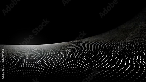 A minimalist abstract design featuring a curved surface with a pattern of dots, creating a sense of depth and motion.