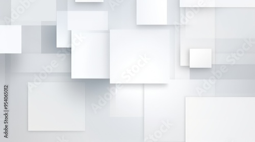 A minimalist abstract design featuring overlapping white squares and rectangles on a light background.