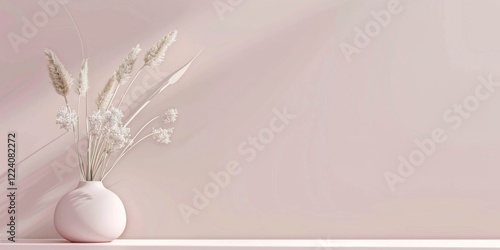 A minimalist aesthetic featuring a light powder pink backdrop, Minimalist design elements arranged symmetrically, Modern minimalist style